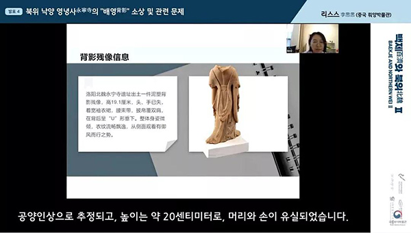 展览开幕之前,韩国国立扶余博物馆为此次展览举办了“交融·魅力——北魏鲜卑拓跋部的历史足迹”为主题的国际学术研讨会,来自中国、韩国、日本、俄罗斯、蒙古等5个国家的专家学者从历史学、考古学、美术史等多种领域通过网络的形式展开了讨论。其中,洛阳博物馆李思思与大同市博物馆韩生存分别作了“北魏洛阳永宁寺‘背影’塑像及其相关问题”、“从嘎仙洞,盛乐,平城到洛阳——拓跋鲜卑迁徙和发展历程”的学术报告。