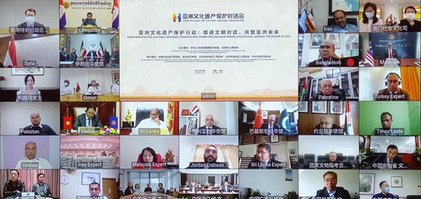 10月27日,亚洲文化遗产保护对话会在北京开幕。对话会以“增进文明对话、共塑亚洲未来”为主题,以线上会议形式召开。对话会由国家文物局与北京市人民政府共同主办,来自亚洲30多个国家,以及联合国教科文组织、国际文化财产保护与修复研究中心等国际组织参会。多国文化部长、驻华使节、文化遗产领域国际组织高级别代表、17国专题演讲人,以及香港特别行政区、澳门特别行政区代表等相聚云端参加对话会。