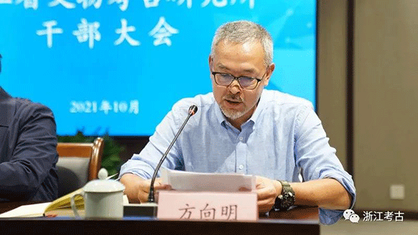 2021年10月29日下午,浙江省文物考古研究所召开干部大会,宣布所长任职决定。浙江省文化和旅游厅党组成员、省文物局局长杨建武出席会议并讲话,新任所长方向明作表态发言,省文物局文物保护与考古处处长李新芳主持会议,省文化和旅游厅人事处处长胡雁、所班子成员及全体在编职工出席会议。