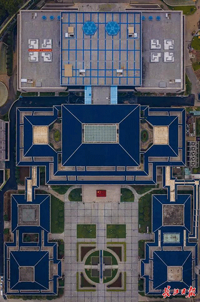 湖北省博建筑群总建筑面积将达11万平方米,从高空俯瞰如一个“鼎”字。(长江日报记者任勇 摄 )