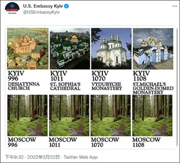 目前,俄罗斯和乌克兰战火正酣,网络上也打得不亦乐乎。美国驻乌克兰大使馆前些天就发了一张这样的图:
