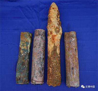 历次调查提取水下文物计180余件,另有65枚清代铜钱。按质地分有银、铜、铁、木、瓷、玻璃、皮革等类,用途涉及船体构件、舰载武器、搭载的官兵生活物品等。