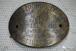 其中,加特林机枪全长116厘米,保存较完好,并附带可旋转托架,前端见呈圆形排列的十根枪管。机枪铭牌尚存,铸有武器名称(GATLING GUN)、公司名称(SIR W.G ARMSTRONG MITCHELL AND COMPANG LIMITED)、口径(0.45)、型号(1886)、产地(NEW CASTLE ON TYNE)信息。鱼雷引信全长58厘米,前端呈圆锥形,钢质的翅钢枪已为凝结块,后端药筒呈细长管状,内装药棉。鱼雷引信发现于艉部,供艉部配备的一具鱼雷管使用。
