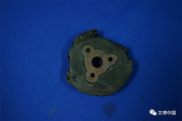 在清理过程中,舰体绝大部分区域均发现有火烧痕迹,过火面积较大,从艏部、右舷、到艉部均有烧焦的痕迹,这些区域只保存下一些不易燃烧的金属类构件。