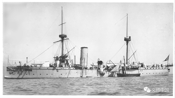 资料照片:刚建成的致远舰停泊在英国朴茨茅斯