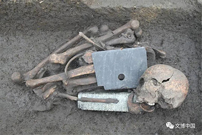 M111为单人拾骨二次葬,葬具为独木棺,棺痕长2.17米、宽0.58-0.67米,墓主为年龄35-39岁的男性。