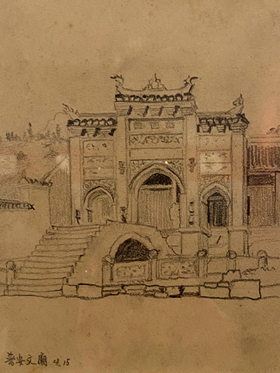 安顺县文庙 纸本铅笔 闻一多