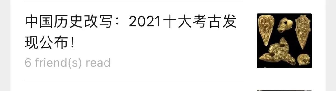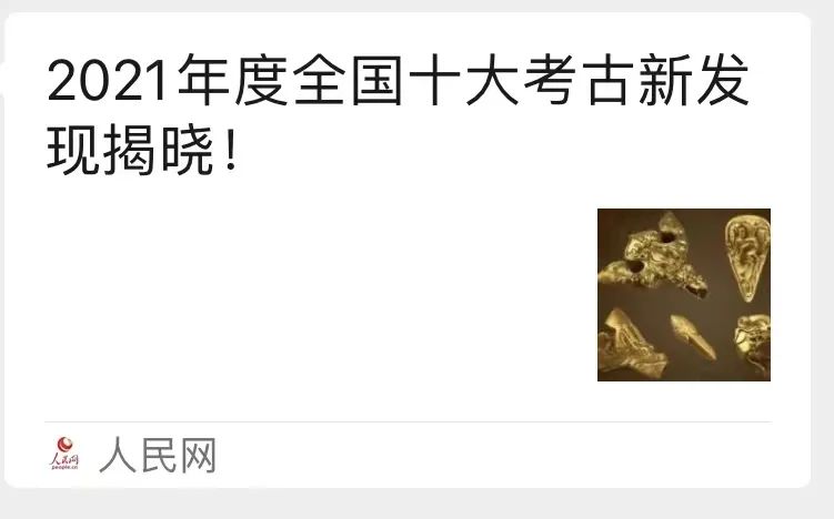 “十大考古”结果宣布后,国家文物局官方微信和“文博中国”微信公众号最先发布结果,瞬间被刷屏。央视新闻微信公众号《2021年度全国十大考古新发现结果揭晓》、人民网微信公众号《2021年度全国十大考古新发现揭晓!》、“占豪”微信公众号《中国历史改写:2021十大考古发现公布!》三篇推文,数小时内,便速速突破十万加的阅读量。此外,约有120多个微信公众号推送相关“十大考古”消息,微信公众号上总阅读量超过100万。