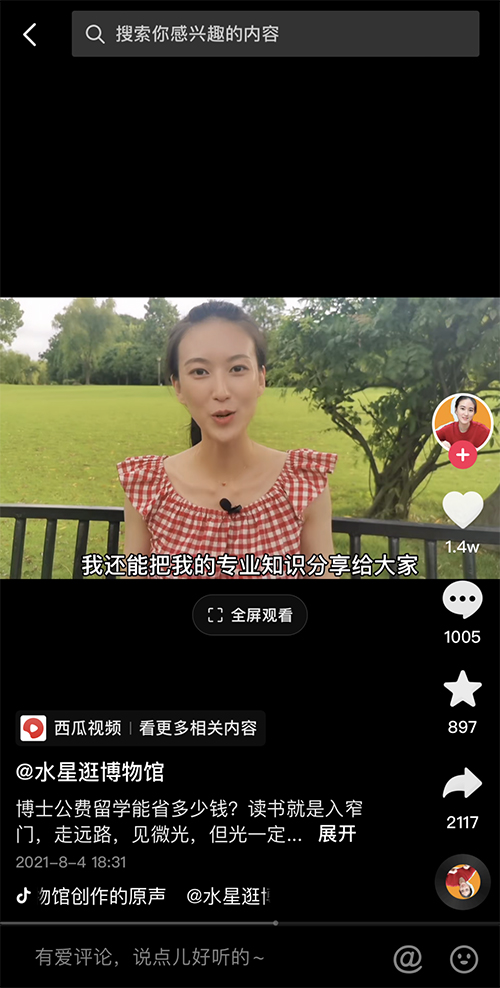 她认为八年的学术训练就是她作为短视频创作者的独特标签。