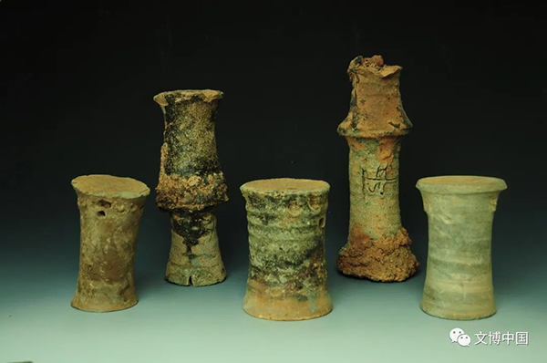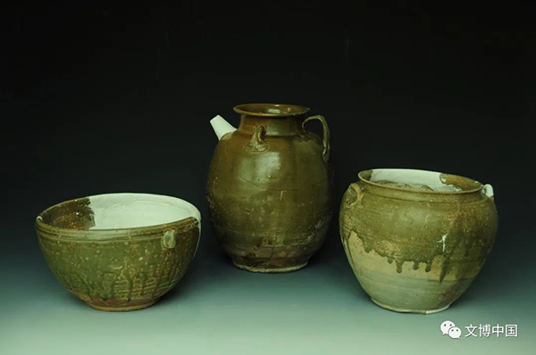 瓷器釉色种类多,有青釉瓷、酱黑釉瓷、青釉褐斑瓷、青釉褐色彩绘瓷以及素胎瓷,以青釉瓷为主。器物造型端庄,器形丰富,大者雄浑,小者精巧,有双系瓶、小瓶、执壶、盘口壶、罐、碗、腰鼓以及器盖等,以碗、盘、双系瓶居多。还发现了人面埙、茶碾、瓷权、砚滴等罕见的器物。