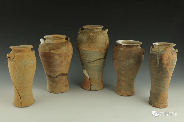 值得关注的是,青釉、酱黑釉腰鼓和器形硕大的大碗,有可能是为满足胡人所需而专门烧造或订烧的,彰显了唐代赣鄱与西域地区文化交流频繁的史实。尤为重要的是出土了夹耳罐、穿带壶等具有重要断代意义的器形。夹耳盖罐是公元800年前后的新产品,是随着海上陶瓷之路的兴起而出现的,是海上陶瓷之路兴起的标志性产品。